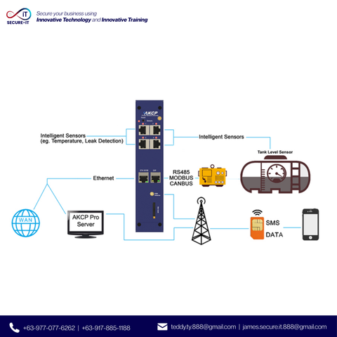 The Environment Monitoring System has specialized sensors that will monitor the state of the following parameters: AC and DC power, temperature, water intrusion, power generator state, power generator battery condition and fuel level.